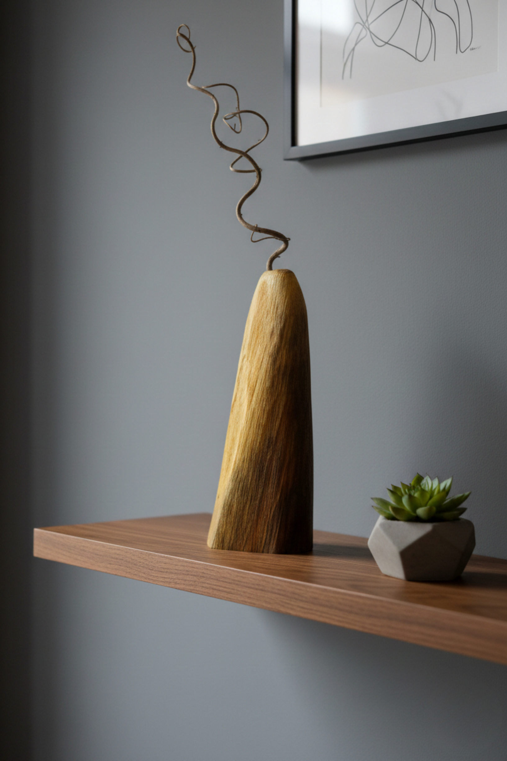 Yaşayan Mekânlar İçin Sanatsal Bir Dokunuş: 23 cm Amorf El İşçiliği Ahşap Vazo