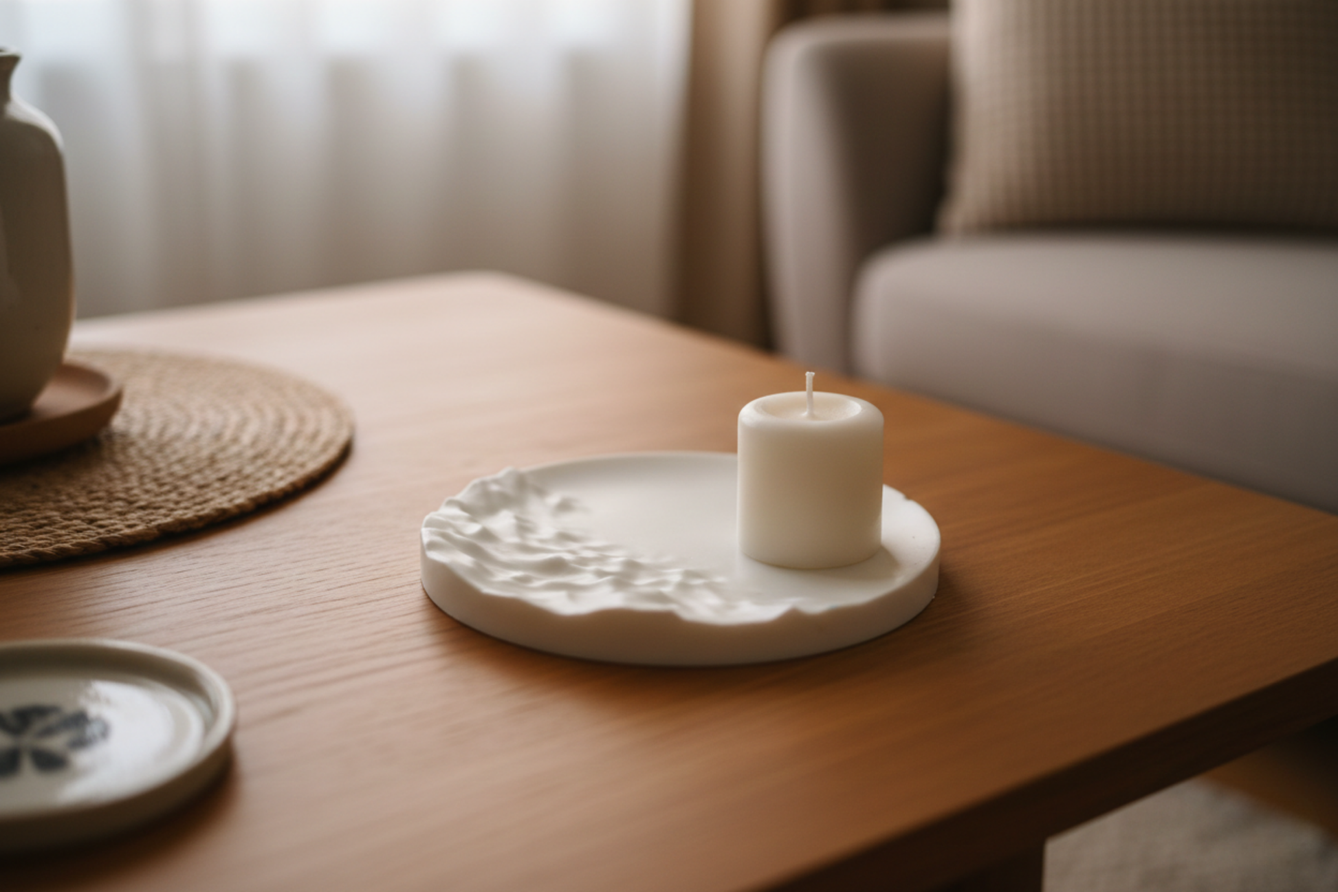 Sanatsal Doku: Tabağın bir yarısındaki üç boyutlu dalga efektleri, ışık ve gölge oyunlarıyla mekana derinlik katar.